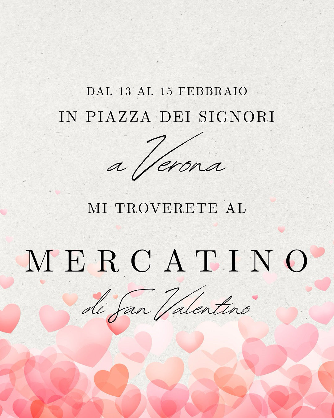 Dal 13 al 15 febbraio 2026 mi troverete a Verona in Piazza dei Signori con le mie nuove collezioni.